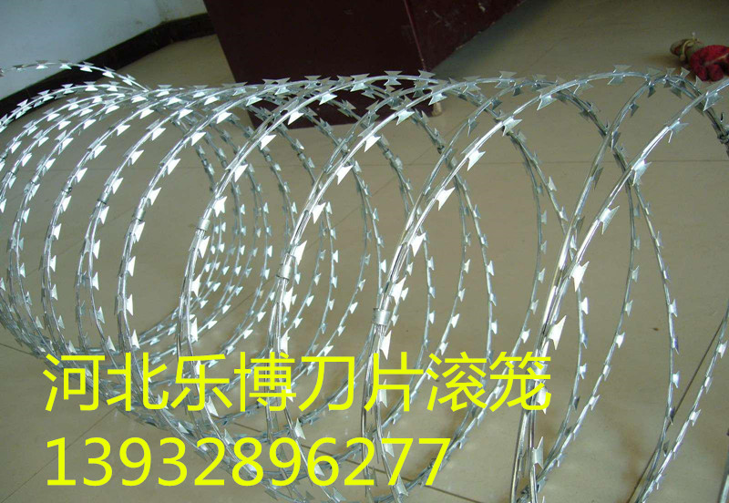 工 藝:它采用鋼板(刀板)沖壓成型包附于熱鍍鋅鋼絲(芯線)之上,由銳利尖角鍍鋅鋼板或不銹鋼薄板做刀片,高張力鋼絲做芯線組合而成的。