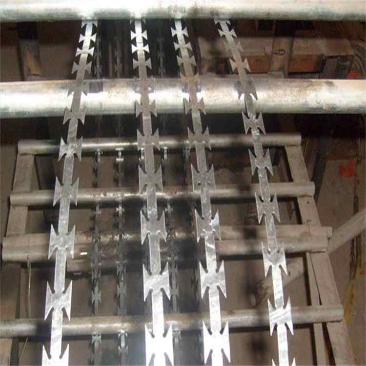 刀片刺繩焊接網(wǎng):也稱為刀片刺絲、刀片刺網(wǎng),是一種新型防護網(wǎng)。是刀片刺繩系列產(chǎn)品之一。
