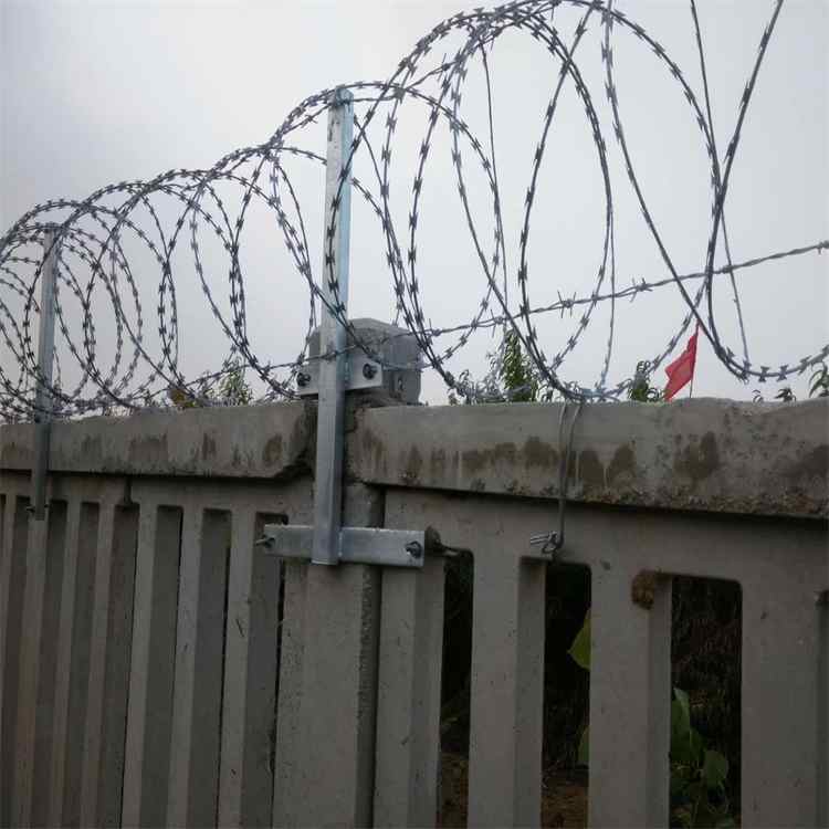 報警刀片防護系統(tǒng)是傳統(tǒng)的普通圍墻(鐵藝圍欄)與智能報警系統(tǒng)的完美結(jié)合,在普通圍墻(或者鐵藝圍欄)上加裝80-200厘米高的報警刀片防護網(wǎng),一方面鋒利的報警刀片本身具有非常好的阻擋功能,另一方面,如果報警刀片防護網(wǎng)遭到破壞,會立即發(fā)出報警聲音。刀片報警系統(tǒng)區(qū)別于所有其它類型周界報警系統(tǒng)的 大 優(yōu)點是:誤報率等于零,即系統(tǒng)沒有誤報,工作非常穩(wěn)定。