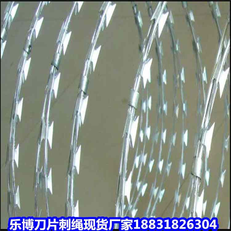 不銹鋼刀片刺繩也稱為不銹鋼刀片刺絲、不銹鋼刀片刺網(wǎng),是一種新型防護(hù)網(wǎng)。不銹鋼刀片刺繩具有美觀、經(jīng)濟(jì)實(shí)用、防阻效果好 、施工便利等優(yōu)異特點(diǎn),目前,不銹鋼刀片刺網(wǎng)已被廣泛應(yīng)用于許多國(guó)家的工礦企業(yè),園林公寓,邊防哨所,軍事領(lǐng)域,監(jiān)獄,看守所,政府建筑物和其他國(guó)家的安 全設(shè)施。