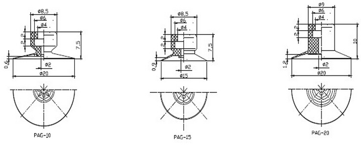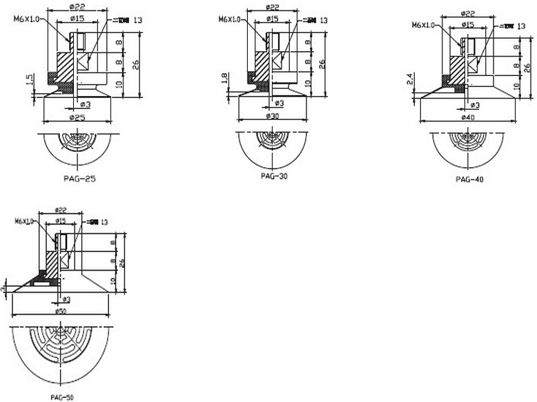 pag系列薄型吸盤(pán)外形尺寸圖: