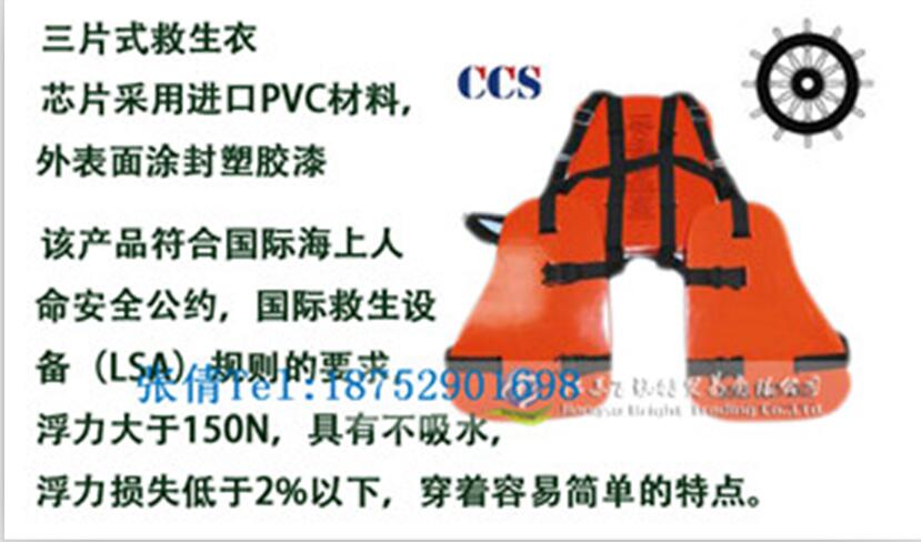 三片式救生衣救生衣為國(guó)內(nèi)新的高技術(shù)產(chǎn)品,可以同國(guó)外同類產(chǎn)品比質(zhì)量,它的外表是類似pvc的塑料,里料外國(guó)外進(jìn)口的浮材救生衣浮力達(dá)到150n特殊救生衣。