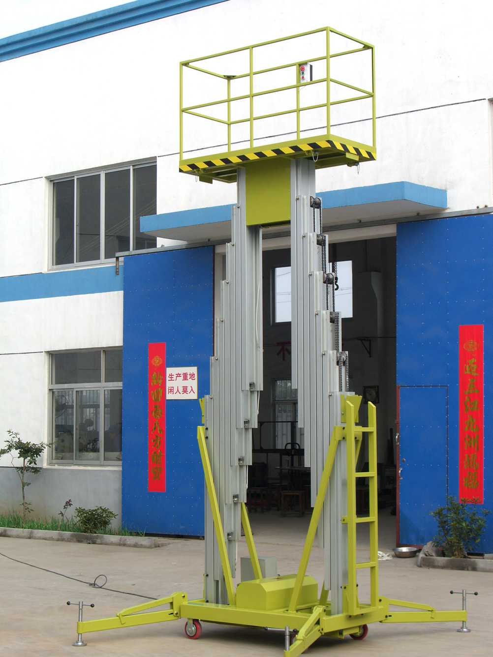 本產(chǎn)品采用高強度優(yōu)質(zhì)鋁合金材料,動力經(jīng)過液壓泵站帶動鏈條傳動,結(jié)構(gòu)合理設(shè)計緊湊。此產(chǎn)品根據(jù)升高高度分為單柱、雙住、三柱和四柱式,具有造型美觀、體積小、重量輕、升降平穩(wěn)等優(yōu)點,并能夠上下操作,廣泛用于酒店賓館、車站候車室、機場候機樓、影劇院、展覽館、體育館等場所,是保養(yǎng)機具、油漆裝修、調(diào)換燈具、電器、清潔保養(yǎng)等用途的最佳安 全高空作業(yè)伴侶。