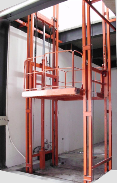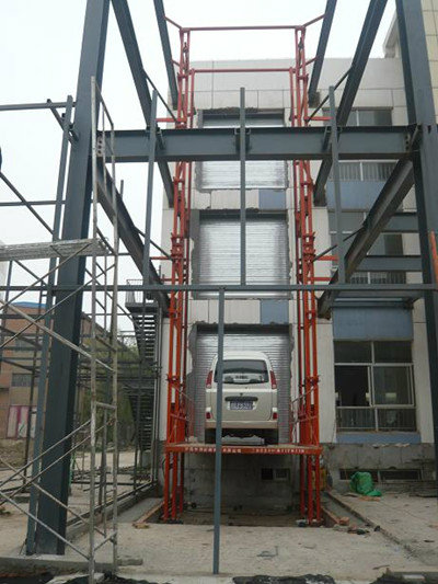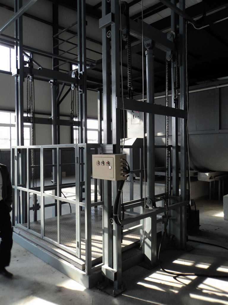 升降機采用液壓油缸作為主要動力,通過重型鏈條和鋼絲繩傳動,保證機器運行的絕對安全。無需地坑和機房,特別適合于有地下室、倉庫改造、新建貨架等,具有安裝維修方便、美觀、安全、操作方便。具體根據(jù)現(xiàn)場的實際環(huán)境生產(chǎn)。