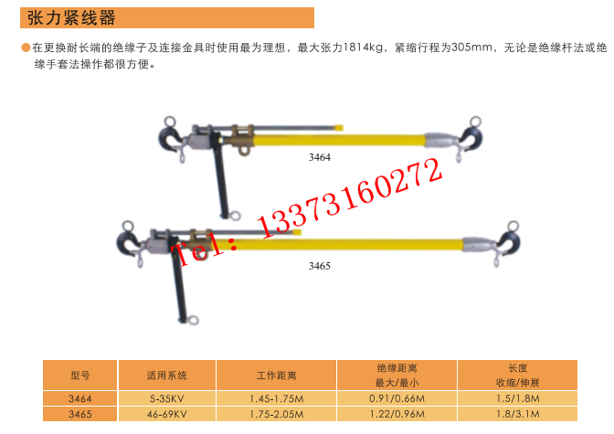 帶電作業(yè)工具 雙鉤緊線器 絕緣緊線器 3465 絕緣雙勾報(bào)價(jià)】