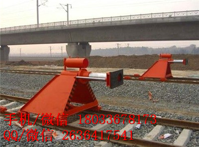 ⑤ 用加壓器對各個彈簧板加壓:將u形加壓快插入承座兩側(cè)空擋,安 裝在加壓器中心螺母上的加壓螺桿桿頭對準(zhǔn)加壓塊,掛在兩側(cè)的加壓軌底板鉤在基本軌底板上,用 螺母擰緊,用長約1.5米鐵棍擰動加壓螺桿并將楔鐵打入承座與板彈簧之間,使板彈簧與彈簧座間隙為0.6±0.05毫米。固定式擋車器 cdg-y型液壓緩沖固定式擋車器