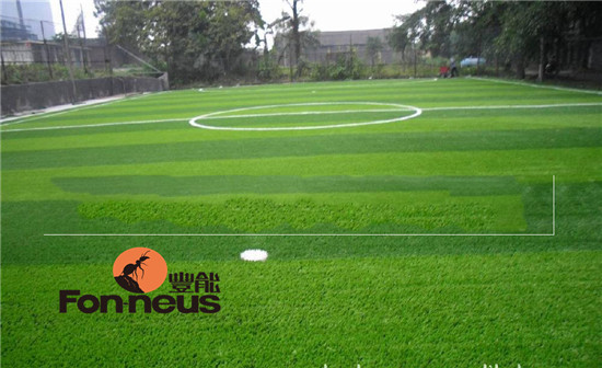 (5)粘接后在未撒石英砂和橡膠顆粒前,對場地的草皮裁切的碎片進行清潔處理。