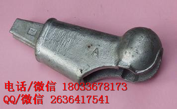 杵座楔形線夾 鐵路金具 杵座楔形線夾選用牌號(hào)為zg270-500的鑄造碳鋼,采用熔模精密鑄造工藝制造,表面三級(jí)熱浸鍍鋅。