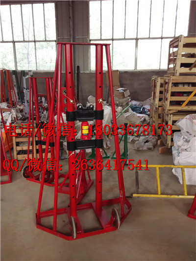 液壓放線(xiàn)架,屬輸電線(xiàn)路架設(shè)維修用放線(xiàn)架的設(shè)計(jì)與制造技術(shù)領(lǐng)域。在底座的加強(qiáng)筋上 有一主支架。在軸承固定板中心部帶有軸承。在墊塊的上面有一千斤頂。在主支架的兩側(cè)上帶有后支撐架。在行走輪固定板上帶有行走輪。本實(shí)用新型的使用是以?xún)?臺(tái)放線(xiàn)架為一組。使用時(shí)將導(dǎo)線(xiàn)盤(pán)推入兩臺(tái)放線(xiàn)架之間,由千斤頂調(diào)整軸承固定板的高度。然后將線(xiàn)盤(pán)軸穿入軸承芯孔,即可放線(xiàn)操作。由于本實(shí)用新型帶有軸承, 使得線(xiàn)盤(pán)軸轉(zhuǎn)動(dòng)變得輕快,減輕了拉線(xiàn)人員的勞動(dòng)強(qiáng)度。另外由于帶有行走輪,在遇有復(fù)雜地形時(shí)可以推動(dòng)行走,無(wú)須多人將其抬起搬運(yùn)。還有就是因?yàn)閮膳_(tái)放線(xiàn)架 相對(duì)為直立面,無(wú)須加長(zhǎng)線(xiàn)盤(pán)軸的長(zhǎng)度。又減小了相應(yīng)部件的重量。從多方面做到省時(shí)省力,從而提高了工作效率。解決了現(xiàn)有產(chǎn)品存在的問(wèn)題。