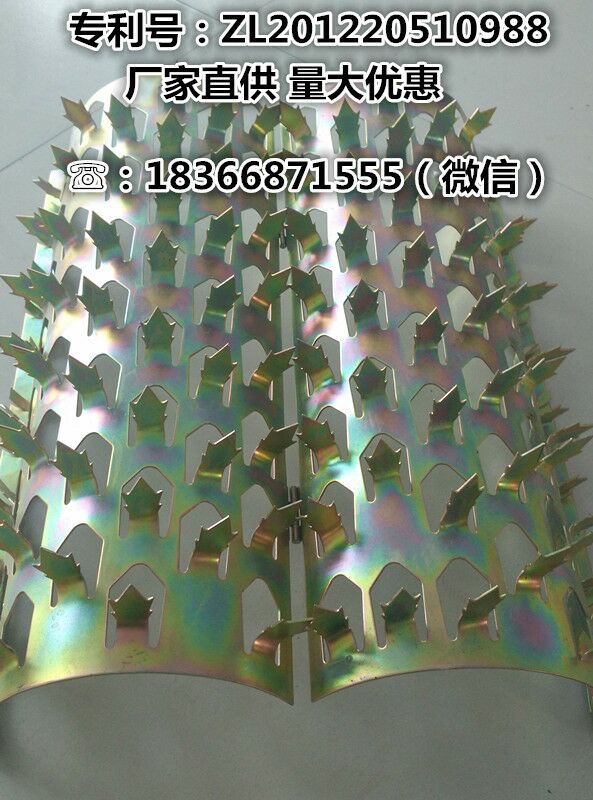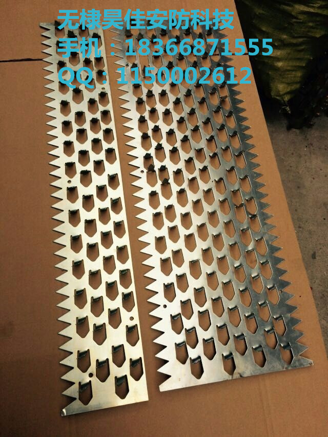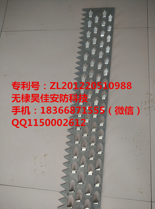 3昊佳防盜刺刺型優(yōu)勢(shì):刺外形象狼牙棒,刺長(zhǎng)5厘米,刺密度大,每顆刺型后期都經(jīng)過(guò)人工彎扭,再一次增加刺的硬度和韌性,相比其他公司很少有這樣的硬度和韌性且稀薄。我司的防盜刺安 裝起來(lái)既起到防盜作用,又美觀了外墻。
