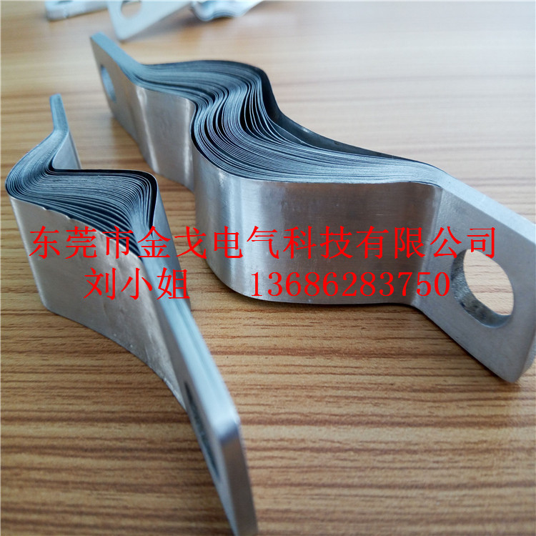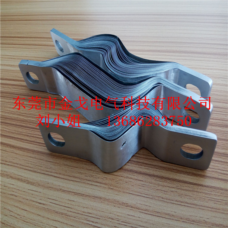 鋁箔軟連接采用單片0.10-0.3mm1060o態(tài)鋁箔帶疊片通過(guò)高分子擴(kuò)散恒溫焊接工藝制作形成,再通過(guò)后續(xù)工藝處理加工成用戶要求安 裝產(chǎn)品,(處理工序包括:沖剪、校邊、開(kāi)孔、清洗、測(cè)試等),參數(shù) 規(guī)格可根據(jù)用戶要求和使用條件定制。