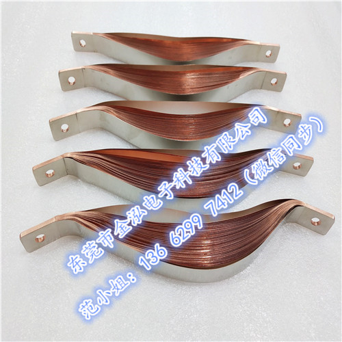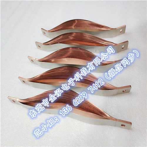 技術(shù)成型:采用優(yōu)質(zhì)t2-t3/0.05~0.3mm無氧紫銅帶/厚銅箔、將銅箔疊片部分壓在一起,采用(分子擴散焊/銀基釬焊料),通過大電流加熱壓焊成型或與扁銅塊對焊成型。