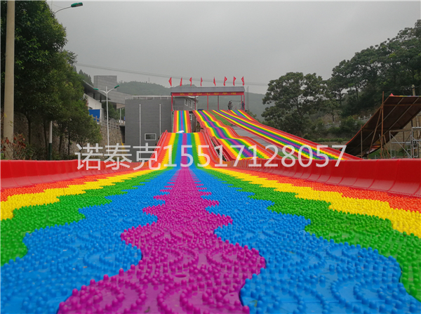 在中國(guó),大部分地區(qū)都屬于冰 雪資源短缺的地域,隨著近年來(lái)全球環(huán)境變暖,冬季的降雪量逐年下降,冰 雪項(xiàng)目的開(kāi)展必然要考慮其它的出路。而七彩滑道的出現(xiàn)為無(wú)雪季贏(yíng)得了商機(jī)。彩虹七彩雪圈滑道是諾泰克nortec廠(chǎng)家新出的一款旱地滑雪產(chǎn)品,因?yàn)樗哂胸S富多彩的顏色,能夠讓人看起來(lái)心情愉悅,更加吸引游客。