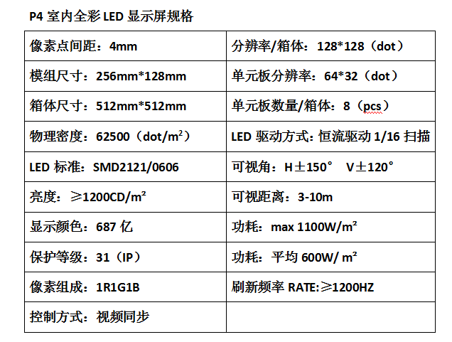 p4室內(nèi)全彩led顯示屏規(guī)格像素 點(diǎn)間距: