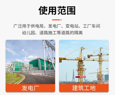 適用于電力、路政等施工地段的隔離防護(hù)。保障施工人員及行人的安 全。