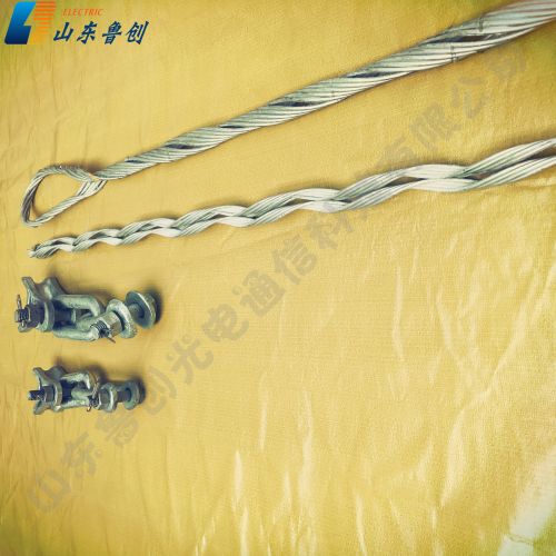 組成:內(nèi)層護(hù)線條預(yù)絞絲,中層預(yù)絞絲,外層絞絲 ,u型環(huán)連接螺栓 。內(nèi)層護(hù)線條預(yù)絞絲:材料選用鋁包鋼絲,與oppc光纜所有的鋁包鋼絲為同一材料,預(yù)絞絲內(nèi)壁通過高強(qiáng)度高分子水溶性環(huán)保膠粘劑 粘有一層金鋼沙,以增加與光纜間的摩擦力,預(yù)絞絲在生產(chǎn)時(shí)被預(yù)制成四個(gè)子束,便于快速安 裝,中層、外層耐張線夾預(yù)絞絲材料選用;鋁包鋼絲,預(yù)絞在工廠加工時(shí)被制成一束并在內(nèi)壁粘有一層牢固的白剛玉砂,已達(dá)到對光纜減小壓力的條件下增加耐張的握力,用戶根據(jù)選用規(guī)格表按光纜徑。,光纜工作張力(線夾使用張力)選配適合的張力線夾。