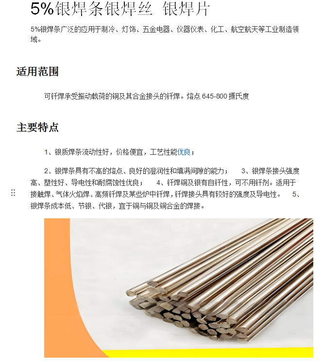 2、銀焊條具有不高的熔點(diǎn)、良好的濕潤性和填滿間隙的能力;