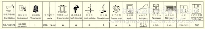 疊針式加固縫線跡漂亮,縫線不會露出縫制表面。sk-160n/30全程采用電腦數(shù)字控制。用戶可根據(jù)需求自由編程,可記憶最多100個循環(huán)縫制程序,每個程序可包含多達31個不同針數(shù)、不同撬縫深度的組合,每個暗縫加固線跡的針數(shù)可在2-15針間任選,深度可在0-50間任意調節(jié)。