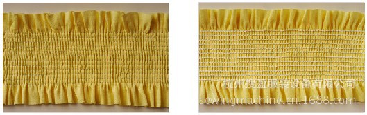本機(jī)型上線普通線,無底線。上線經(jīng)過前拖輪裝置,橡筋線從拖輪中間經(jīng)過,便于送料,線跡均勻。