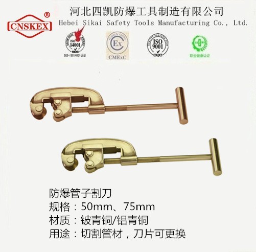 河北四凱防爆管子割刀。材質:鈹青銅,鋁青銅。規(guī)格:2寸。用于切割管材,刀片可更換。在易燃易爆氣體環(huán)境中作業(yè)不產生機械火花。