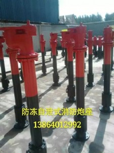 消防炮座、消防水炮炮座,該產(chǎn)品是一種與消防炮配套使用的消防設(shè)備。其特點是:1.防凍功能。不銹鋼自動排水閥安 裝于凍土層以下(根據(jù)使用區(qū)域不同的凍土層深度,自動排水閥的埋深深度也相應改變),炮座在關(guān)閉狀態(tài)時可自動排除腔內(nèi)余水,防止地上部分設(shè)備凍壞,同時還節(jié)省了消防管道立管前端的閘閥井和閘閥的設(shè)置,既節(jié)約了投資,又節(jié)省了后期維護費用,延長了水炮使用壽命;2.操作簡單,開關(guān)快速。僅使扳手旋轉(zhuǎn)4/5周即可完全關(guān)閉和開啟;3.防撞功能。本設(shè)備地上部分如被撞斷后閥門能夠自動封閉,立即止水,不影響同管線其它設(shè)備的正常使用,并能帶壓修復損壞之配件;4.調(diào)壓功能。開啟扳手旋轉(zhuǎn)至任一位置,可實現(xiàn)出口不同壓力,使水炮噴射點達到最佳狀態(tài);本產(chǎn)品是石化企業(yè)首選消防產(chǎn)品。
