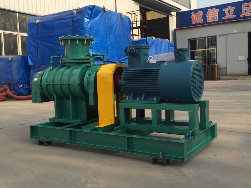 雙級(jí)羅茨風(fēng)機(jī)是由兩臺(tái)sr系列標(biāo)準(zhǔn)羅茨鼓風(fēng)機(jī)串聯(lián)而成。當(dāng)氣體進(jìn)入第一級(jí)風(fēng)機(jī)升壓后,經(jīng)過中間冷卻器將氣體溫度隆至40℃以下,然后進(jìn)入二級(jí)風(fēng)機(jī)繼續(xù)升壓,機(jī)組最高升壓可達(dá)180kpa。兩級(jí)風(fēng)機(jī)的主機(jī)由同一臺(tái)電機(jī)通過皮帶傳動(dòng)或雙軸伸電機(jī)直聯(lián)傳動(dòng)。折疊工作原理雙級(jí)羅茨風(fēng)機(jī)是一種由兩臺(tái)羅茨風(fēng)機(jī)串聯(lián)組成的裝置。每臺(tái)風(fēng)機(jī)箱體內(nèi)部均有兩個(gè)轉(zhuǎn)向相反的三葉型轉(zhuǎn)子,每個(gè)三葉型轉(zhuǎn)子用兩個(gè)軸承支撐,利用一對(duì)高精度的同步直齒輪,使兩個(gè)轉(zhuǎn)子的相對(duì)位置始終保持不變,轉(zhuǎn)子之間以及轉(zhuǎn)子與箱體之間保持一定的間隙,無接觸旋轉(zhuǎn)。轉(zhuǎn)子在側(cè)箱體同步齒輪的驅(qū)動(dòng)下,借助兩轉(zhuǎn)子的“嚙合”,使進(jìn)氣口與出氣口相互隔開,完成箱體和轉(zhuǎn)子間的密閉氣體從吸入側(cè)到吐出側(cè)的移送過程。在旋轉(zhuǎn)過程中無內(nèi)壓縮地將工作腔內(nèi)的氣體從進(jìn)氣口推移到出氣口。轉(zhuǎn)子與轉(zhuǎn)子、轉(zhuǎn)子與箱體、轉(zhuǎn)子與墻板之間都有微小間隙,因而工作腔內(nèi)沒有摩擦,無接觸磨損部分。