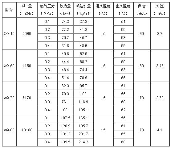 二、xq型蒸汽暖風(fēng)機(jī)技術(shù)參數(shù):