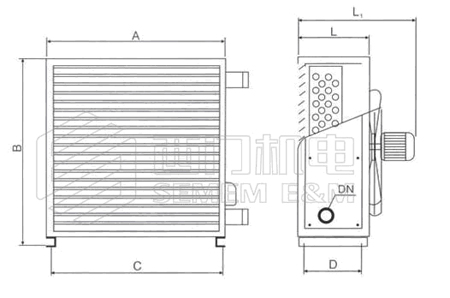 xq型蒸汽暖風(fēng)機(jī)熱媒接口可根據(jù)用戶要求同側(cè)連接、異側(cè)連接、上下連接均可。