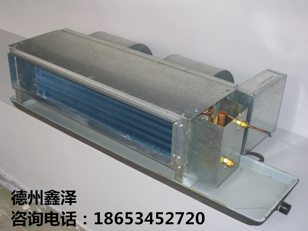 風(fēng)機(jī)盤(pán)管機(jī)組的結(jié)構(gòu)比較簡(jiǎn)單,例如常見(jiàn)的吊頂式風(fēng)機(jī)盤(pán)管;它是在一個(gè)不大的結(jié)構(gòu)空間內(nèi),組裝有離心式或貫流式的通風(fēng)機(jī)以及銅管穿肋片的傳熱管束。