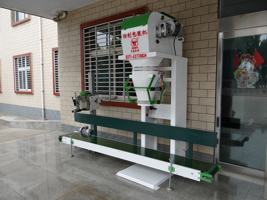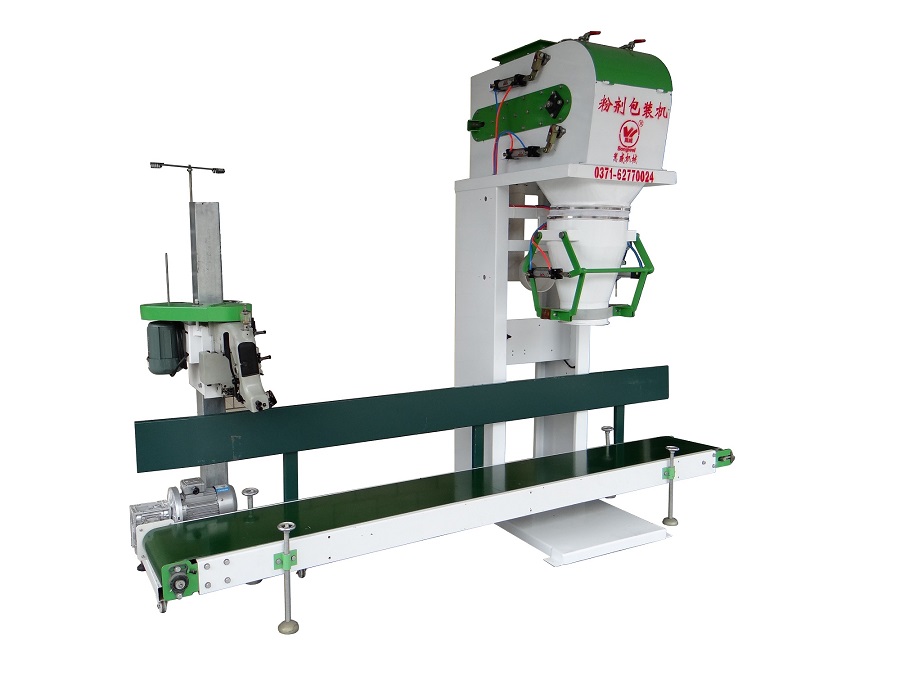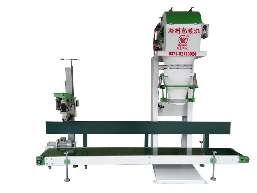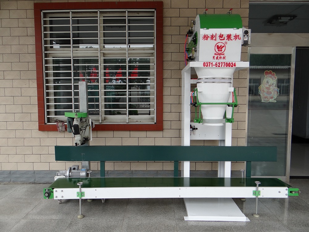 該包裝秤專為淀粉 、面粉 、化工、肥料、bb肥、種子大米、糧食等流動(dòng)性較好的粉 料物料和顆粒物料的定量包裝而設(shè)計(jì),粉 劑 的采用有大小螺桿式給料,顆粒的采用自流加震動(dòng)式兩種結(jié)構(gòu)通過變頻器讓螺桿推進(jìn)器進(jìn)入緩沖料倉,物料通過變頻控制的給料螺桿送到袋內(nèi),顆粒通過自流門大小調(diào)節(jié)和慢下震動(dòng)一級(jí)方式來控制。粉 劑 的通過控制螺桿的轉(zhuǎn)速頻率控制給料量,料袋一旦到秤裝滿,其夾袋器通過控制系統(tǒng)打開,料袋通過輸送帶送走,由人工輔助封口。