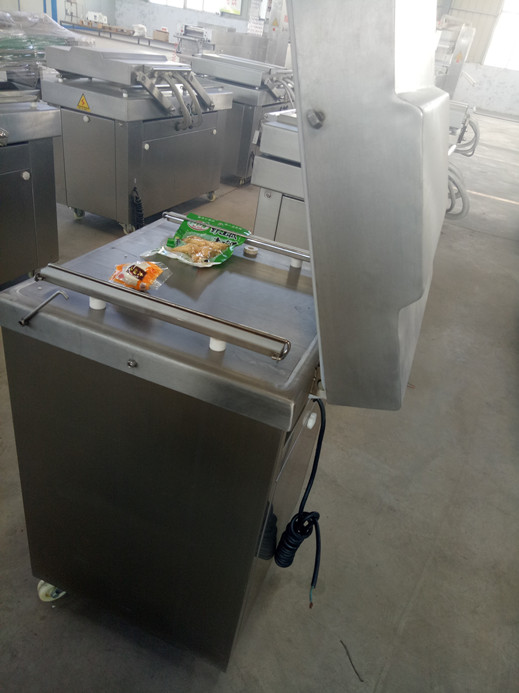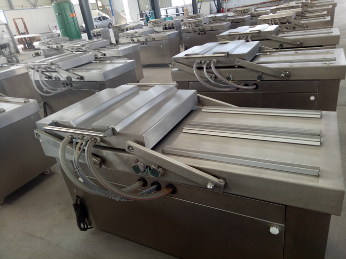 500/600/700雙室真空包裝機是利用擺蓋的原理來進行完成真空包裝的,雙室真空包裝機是利用兩個工作室,擺蓋的形式完成的,一個工作室擺上商品,把上蓋擺到擺好商品的真空室上面,按下開關(guān),機器會自動完成抽真空封口操作,這個過程完成同時 ,另一個工作式可以擺放商品,等那個工作結(jié)束以后在擺動上蓋完成這個工作室的包裝操作。