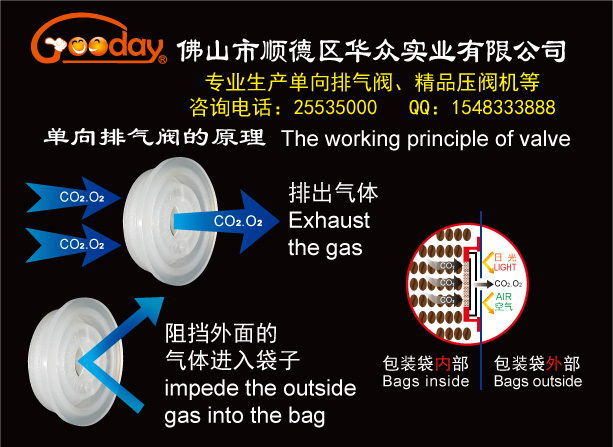 1、單向排氣閥封裝在咖 啡 袋上面,并在封裝單向閥位置的袋子表面扎孔,就能將烘培后的咖 啡 豆析出的二氧化碳自動排出袋子外面,又保證外界空氣無法進(jìn)入袋內(nèi)。有效的保證了咖 啡 豆的干燥和醇香原味,也不會因?yàn)槎趸嫉姆e聚令到袋子漲開,防止內(nèi)包裝物被氧化污染變質(zhì)。主要應(yīng)用于包裝袋儲藏袋、保鮮袋、咖 啡 袋等需要單向透出氣體的軟包裝。