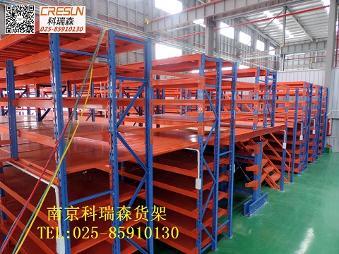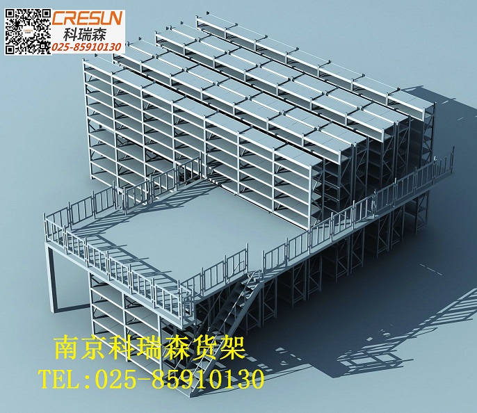 5、下層是貨架形式,上層可以是平臺(tái)也可以是貨架的結(jié)構(gòu)。底層貨架既可以存儲(chǔ)物料又是樓面的支撐,極具靈活性。