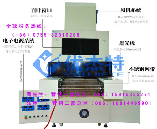 優(yōu)勢二、大大地提高了固化速度,縮短生產(chǎn)時長。固化一個產(chǎn)品從開始到結(jié)束,所需要的時間短至幾秒鐘到長至幾十秒鐘,就可保質(zhì)保量地完成一個固化周期。特別適用于要求高效生產(chǎn)的自動化生產(chǎn)線的生產(chǎn)。