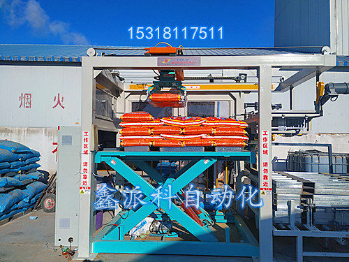 在使用碼垛機(jī)的情況下,托盤(pán)也是必不可少的,托盤(pán)尺寸適用范圍廣,滿(mǎn)足各種型號(hào)尺寸的托盤(pán)。包裝后的包裝袋,通過(guò)縫包輸送機(jī)的過(guò)渡,以側(cè)立狀態(tài)進(jìn)入倒袋輸送機(jī);在倒袋裝置的作用下,包裝袋平躺于倒包輸送機(jī)上(縫口部位朝后、底部朝前);之后通過(guò)輸送機(jī)、碾軋整機(jī)的整理后,包裝袋達(dá)到高位碼垛機(jī)抓取輥道位置,高位碼垛機(jī)將根據(jù)設(shè)定程序進(jìn)行抓取作業(yè)。碼垛到托盤(pán)上,再用叉車(chē)運(yùn)輸?shù)剿璧攸c(diǎn)就可以了。