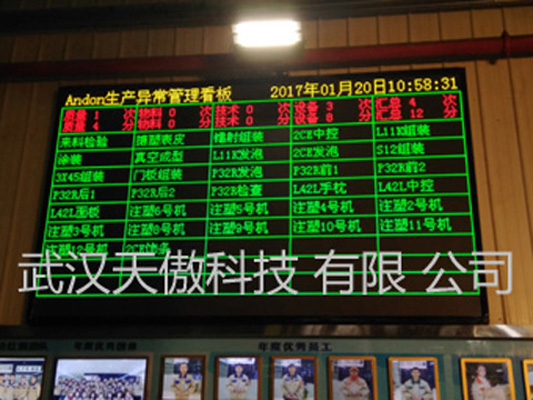 武漢天傲科技有限公司專注于為生產型企業(yè)設計、制造無線/有線andon安 燈系統、電子看板系列、電子貨架/倉儲系統、工廠綜合生產信息看板系統、生產線實時電子/液晶看板、設備采集及監(jiān)控系統、智慧工廠目示化管理系統、精益化管理系統等軟硬件產品.