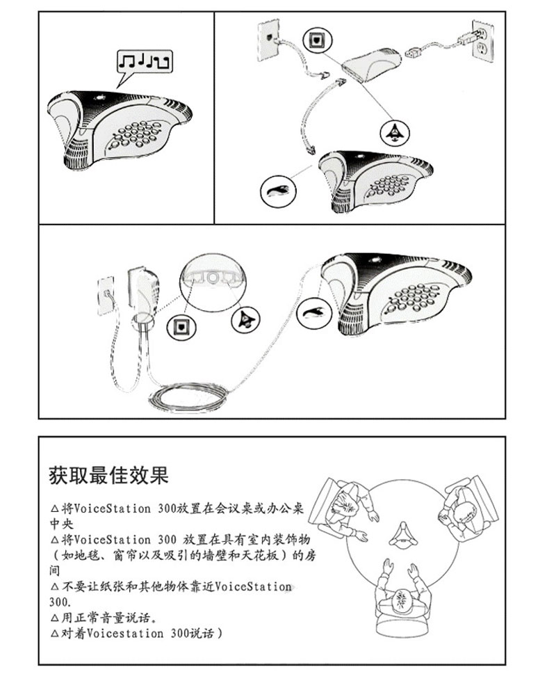 寶利通 polycom voicestation300 會(huì)議電話機(jī)廠家給出 的保守?cái)?shù)據(jù)為3-4人小型會(huì)議室使用,拾音半徑為2.1米;經(jīng)過(guò)多年實(shí)測(cè)經(jīng)驗(yàn),可適用于10人以內(nèi),20平方左右的會(huì)議室,拾音半徑可達(dá)3米