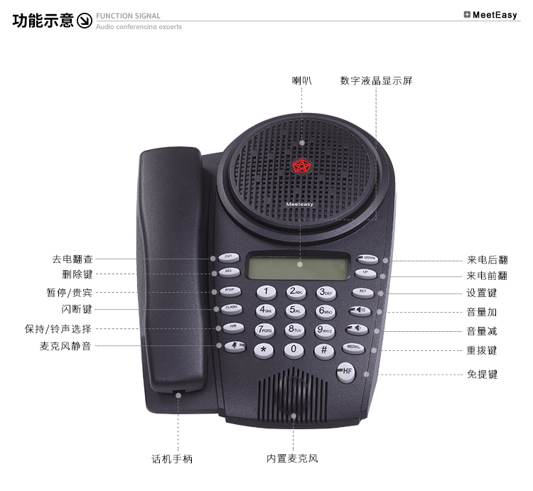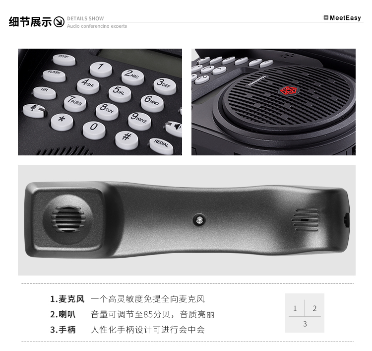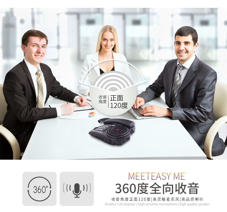 好會通會議電話機meeteasy® me是專為經理人桌面和小型會議設計,簡單的會議電話,性價比最好,擁有高靈敏度免提麥 克風,360度全方位覆蓋,聲音清澈明亮,徹底解放您的雙手;獨有聽筒設計,貼近使用習慣;優(yōu)質的全雙工通話效果,適合召開小型電話會議