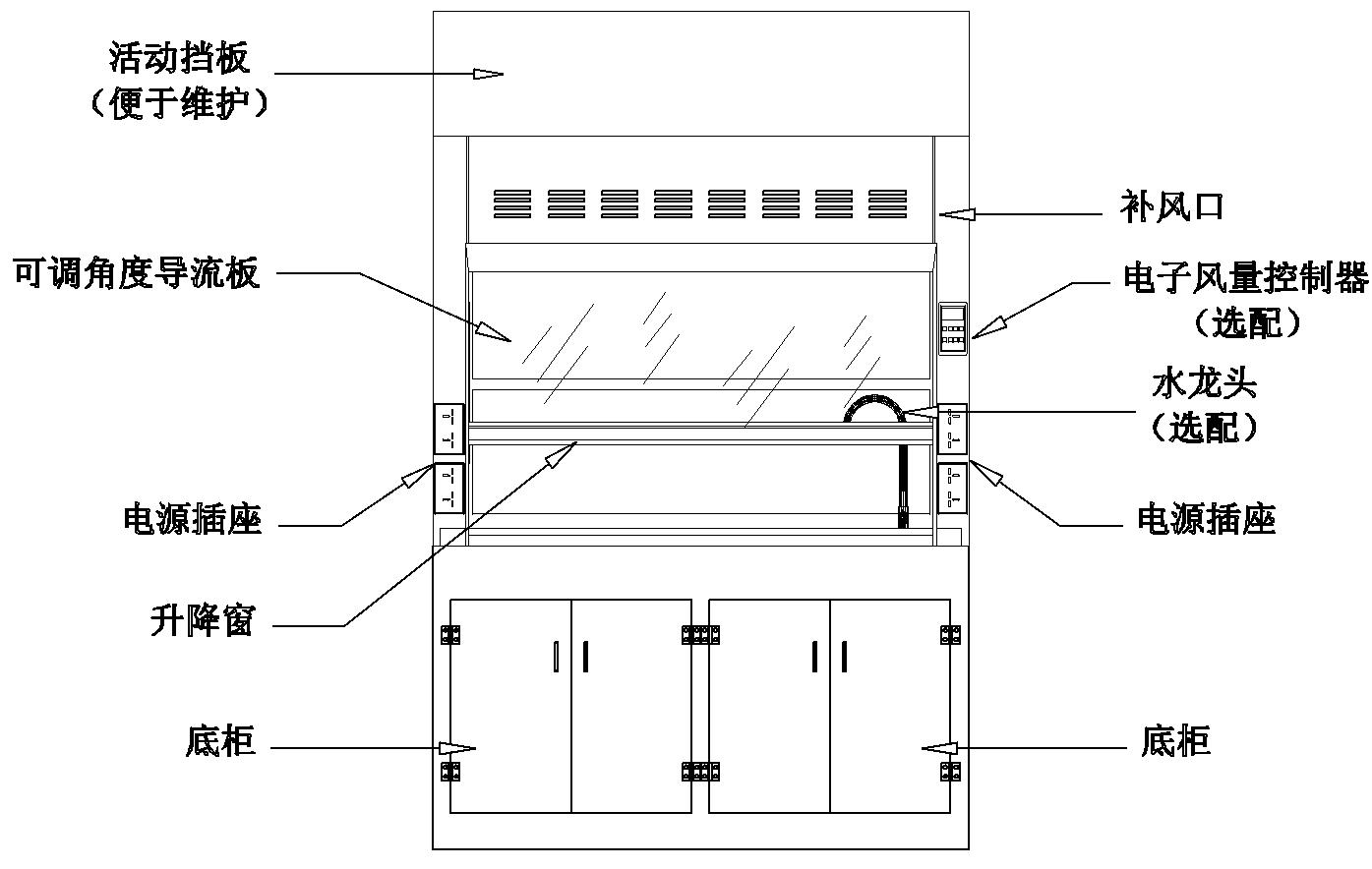 圖1 通風(fēng)柜結(jié)構(gòu)示意圖