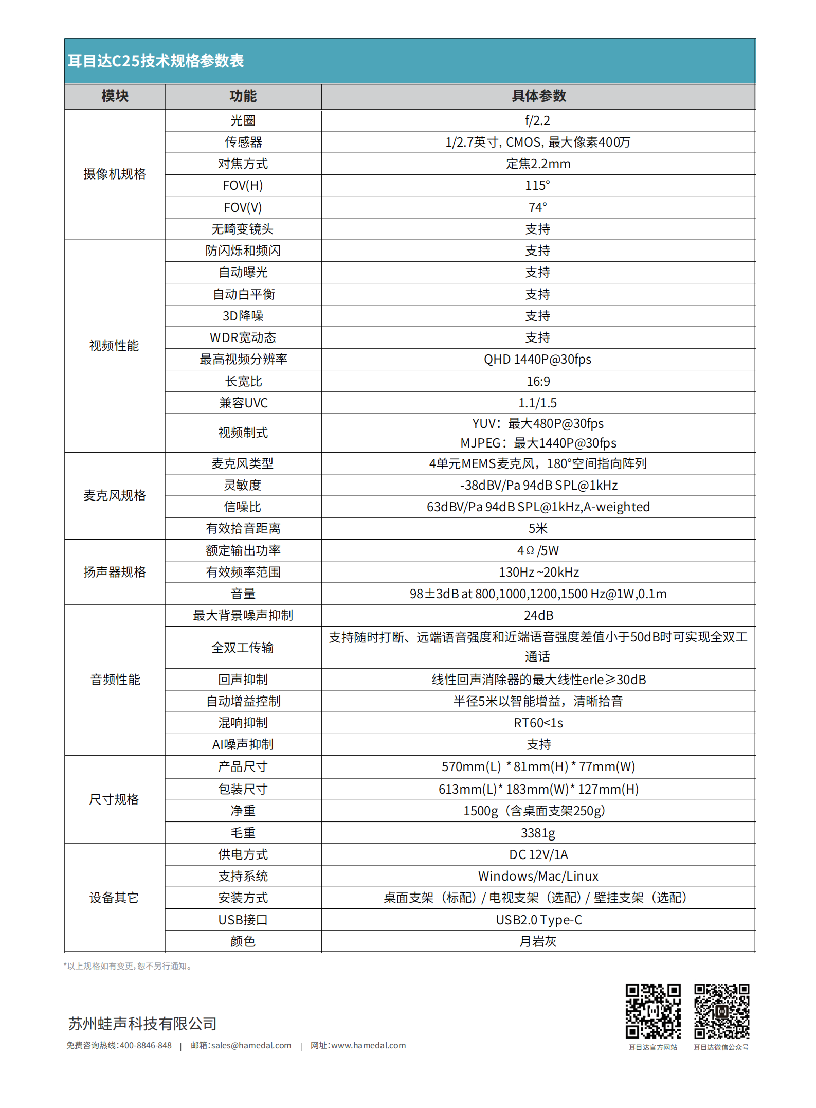 耳目達(dá)c25超清視頻會(huì)議一體機(jī)是一款2k超清視頻會(huì)議一體機(jī),該產(chǎn)品擁有115°超大水平視角,搭載400萬(wàn)像素 高_(dá)品質(zhì)cmos傳感器,最_高_(dá)支持1440p@30fps超清視頻通話。內(nèi)置4單元麥 克風(fēng)陣列及專為人聲優(yōu)化的全頻揚(yáng)聲系統(tǒng),獨(dú)有ai降噪技術(shù)加持,帶來(lái)5米范圍內(nèi)優(yōu)質(zhì)全雙工通話。c25集攝像頭、麥 克風(fēng)、揚(yáng)聲器于一體,usb即插即用,部署簡(jiǎn)便,可完美適用于2-7人小型辦公空間。