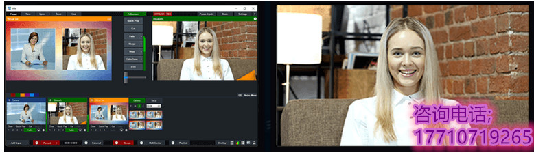 萬影通擁有 4 路的攝像機(jī)輸入(可擴(kuò)展),4u 機(jī)架式或便攜式設(shè)計(jì)。符合一般 efp 多機(jī)錄像作業(yè)環(huán)境所有需要,內(nèi)建的虛擬場景技術(shù),更能夠以小空間制作出大場景的環(huán)境,用適切的燈光,高畫質(zhì)的攝像機(jī),以及綠色或藍(lán)色的背景,就能創(chuàng)造出令人驚異的效果,顛覆一般人對導(dǎo)播機(jī)使用的限制。