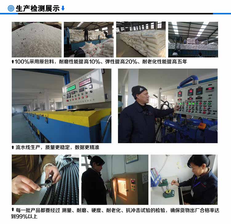 【產(chǎn)品功能】螺旋膠管保護(hù)套增強(qiáng)液壓膠管,電線電纜等內(nèi)部產(chǎn)品的耐磨抗靜電和抗紫外線性能,在各種惡劣環(huán)境下對(duì)液壓膠管等內(nèi)部產(chǎn)品起到保護(hù)作用,延長(zhǎng)內(nèi)部產(chǎn)品壽命可長(zhǎng)達(dá)3年以上。是其他膠管護(hù)簧產(chǎn)品和護(hù)套產(chǎn)品不可比擬的。