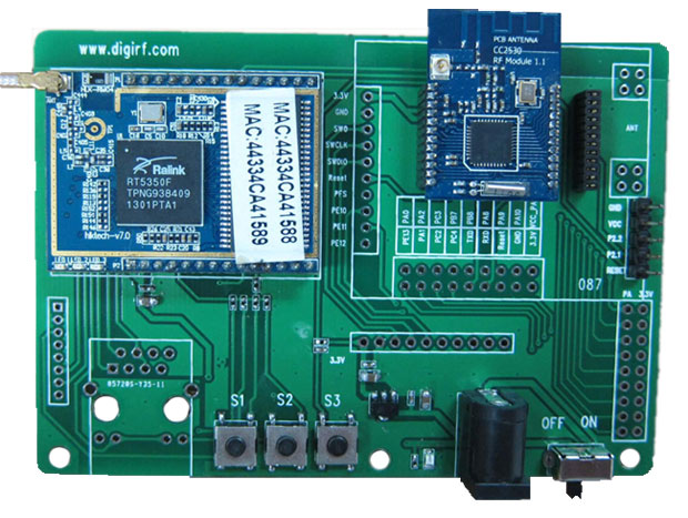 本demo板用于實(shí)現(xiàn)zigbee網(wǎng)絡(luò)與wifi網(wǎng)絡(luò)的相互轉(zhuǎn)化。及zigbee模塊如cc2530通過(guò)串口通訊與wifi模塊,實(shí)現(xiàn)互聯(lián)網(wǎng)訪問(wèn)zigbee網(wǎng)絡(luò)。