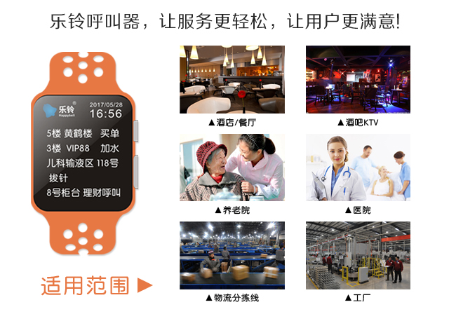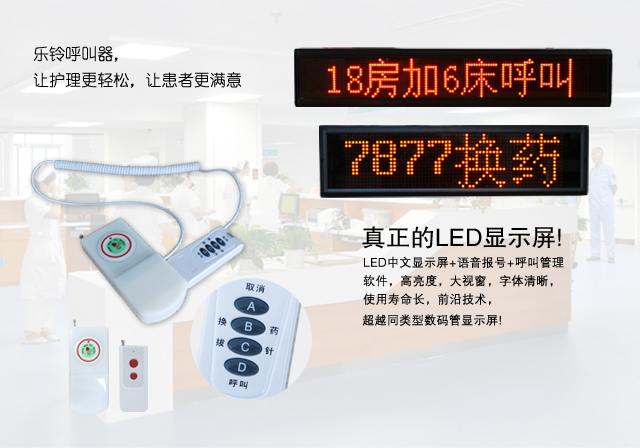 樂鈴無線呼叫器,讓護(hù)理更輕松,讓用戶更滿意,呼叫器+床頭呼叫手柄,舊病區(qū)改造專用無線呼叫器,加床呼叫器,老人室內(nèi)定位報(bào)警求助,衛(wèi)生間報(bào)警求助,防摔自動(dòng)報(bào)警,自動(dòng)組網(wǎng),技術(shù)先進(jìn),無需設(shè)置。移動(dòng)腕表主機(jī),雙語操作系統(tǒng),支持任何語言定制,可以免費(fèi)定制中文房號(hào),包房名稱,呼叫服務(wù)內(nèi)容等。樂鈴呼叫器,機(jī)型眾多,功能完善,有一體機(jī),分體機(jī),led顯示屏主機(jī),數(shù)碼管顯示屏主機(jī),各類型腕表呼叫器,支持小批量定制,大量出貨,時(shí)間周期短,品質(zhì)好。支持oem,odm等,中文主機(jī)支持中文房號(hào)顯示+語音報(bào)號(hào)+配電腦呼叫管理軟件+手機(jī)客戶端,提供api數(shù)據(jù)輸出,上位機(jī)對(duì)接等功能,支持大型工廠項(xiàng)目,工程項(xiàng)目定制化需求,我們有專業(yè)的技術(shù)研發(fā)隊(duì)伍提供技術(shù)對(duì)接,開發(fā)支持。