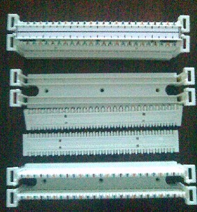 恒貝通信:110配線架 配線架是電纜或光纜進行端接和連接的裝置。在配線架上可進行互連或交接操作。建筑群配線架是端接建筑群干線電纜、光纜的連接裝置。建筑物配線架是端接建筑物干線電纜、干線光纜并可連接建筑群干線電纜、干線光纜的連接裝置。樓層配線架 水平電纜、水平光纜與其他布線子系統(tǒng)或設備相連接的裝置。光纖配線架在后面部份還會單獨介紹,這里介紹的都是銅纜配線架。 銅纜配線架系統(tǒng)分110型配線架系統(tǒng)和模塊式快速配線架系統(tǒng)。 110型連接管理系統(tǒng)由恒貝通信公司于1988年首先推出,該系統(tǒng)后來成為工業(yè)標準的藍本。110型連接管理系統(tǒng)基本部件是配線架、連接塊、跳線和標簽 。110型配線架是110型連接管理系統(tǒng)核心部份,110配線架是阻燃、注模塑料做的基本器件,布線系統(tǒng)中的電纜線對就端接在其上。 110型配線架有25對、50對、100對、300對多種規(guī)格,它的套件還應包括4對連接塊或5對連接塊,110型配線系統(tǒng)使用方便的插拔式快接式跳接可以簡單也進行回路的重新排列,這樣就為非專業(yè)技術人員管理交叉連接系統(tǒng)提供了方便。110型配線架主要有以下類型: 110aw2:100對和300對連接塊,帶腿。 110dw2:25對、50對、100對和300對接線塊,不帶腿。 110ab:100對和300對帶連接器的終端塊,帶腿。 110pb-c:150對和450對帶連接器的終端塊,不帶腿。 110ab:100對和300對接線塊,帶腿。 110bb:100對連接塊,不帶腿。 110型配線架的缺點是不能進行二次保護,所以在入樓的地方需要考慮安 裝具有過流、過壓保護裝置的配線架。 110型配線架主要有五種端接硬件類型。110a型、110p型、110jp型、110vp visipatch型和xlbet超大型。110a、110p、110jp、110vp visipatch和xlbet系統(tǒng)具有相同的電氣性能,但是其性能、規(guī)格及占用的墻場或面板大小則有所不同。每一種硬件都有它自己的優(yōu)點。 110a配線架。110a型配線架配有若干引腳,俗稱“帶腿的110配線架”。110a可以應用于所有場合,特別是大型電話應用場合,也可以應用在配線間接線空間有限的場合,因為由于110a與110p配線線路數目相同的情況下,110a占用的空間是110p的一半。110a系統(tǒng)一般用ccw-f單連線進行跳線交連,而ccw-f跳線性能只達到三類,這限定了110a系統(tǒng)的性能在使用ccw跳線時其水平只能達到三類。但如果使用110a快接式跳線可以將性能提高到超五類或六類水平。110a系統(tǒng)是110配線架系統(tǒng)中價格最低的組件。