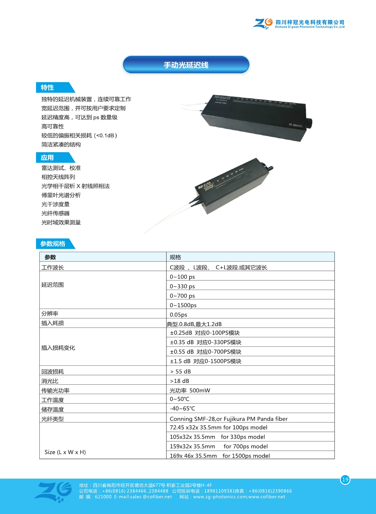 本產(chǎn)品為反射式光路可變光纖型手動延遲線,適用于高靈敏度光纖干涉儀等應用。采用低損耗角棱錐鏡、高精度一維線性位移臺與高效能旋鈕調(diào)節(jié)技術,系統(tǒng)具有極高的剛度和調(diào)節(jié)精度,可實現(xiàn)精密步長調(diào)節(jié)。獨有的光路調(diào)校技術,可確保低插入損耗與低插入損耗變化量。高強度加強結構,提高了反射型光纖延遲線特有的尺寸穩(wěn)定性差問題,方便科研教學用戶實驗觀察,提供定制加工,可根據(jù)客戶要求對光學及手動部分進行調(diào)整。