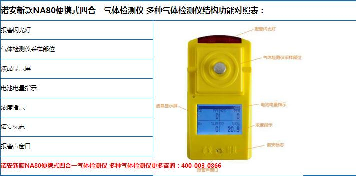 諾安 便攜式四合一氣體檢測儀產(chǎn)品特點: