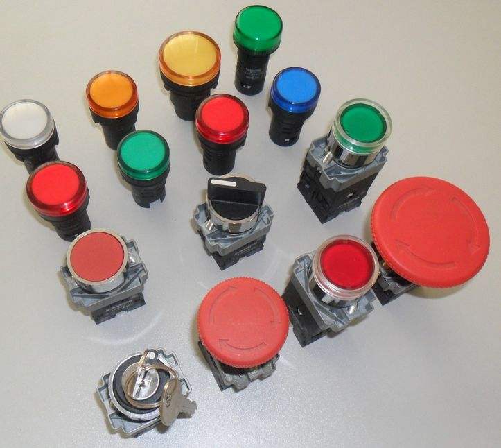 為了標(biāo)明各個按鈕的作用,避免誤操作,通常將按鈕帽做成不同的顏色,以示區(qū)別,其顏色有紅、綠、黑、黃、藍(lán)、白等。如,紅色表示停止按鈕,綠色表示起動按鈕等。按鈕開關(guān)的主要參數(shù)、型式、安 裝孔尺寸、觸頭數(shù)量及觸頭的電流容量,在產(chǎn)品說明書中都有詳細(xì)說明。