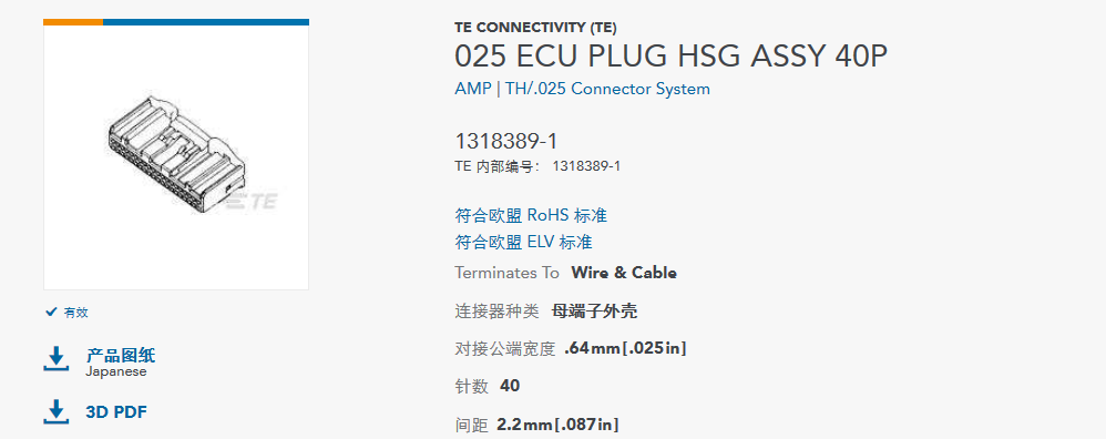 連接器護(hù)套泰科料號(hào)1318389-1母端子外殼信號(hào)連接器電氣特性