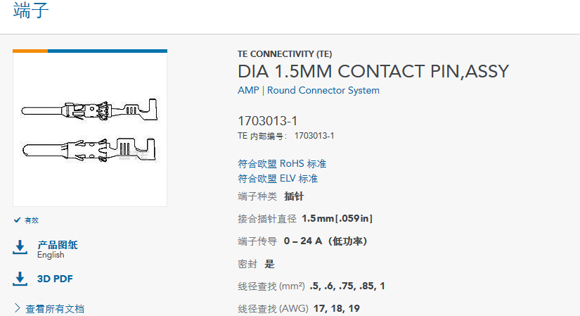 連接器汽車卡車大巴端子泰科料號(hào)1703013-1簡(jiǎn)介